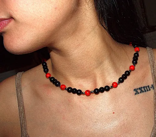 Descubre un collar único para mujer que armoniza la energía vibrante con un estilo elegante. Esta pieza artesanal cuenta con llamativas piedras de turquesa roja, cuentas de ónix negro intenso y elegantes ágatas negras, todo ello acentuado con detalles en acero inoxidable. Cada piedra ha sido seleccionada para resonar con energías protectoras y estabilizadoras, creando una pieza que no solo tiene un aspecto atrevido, sino que también transmite empoderamiento.