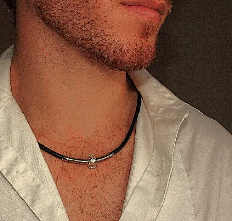 Collar de cristal hecho a mano con detalles en cuero auténtico y acero inoxidable